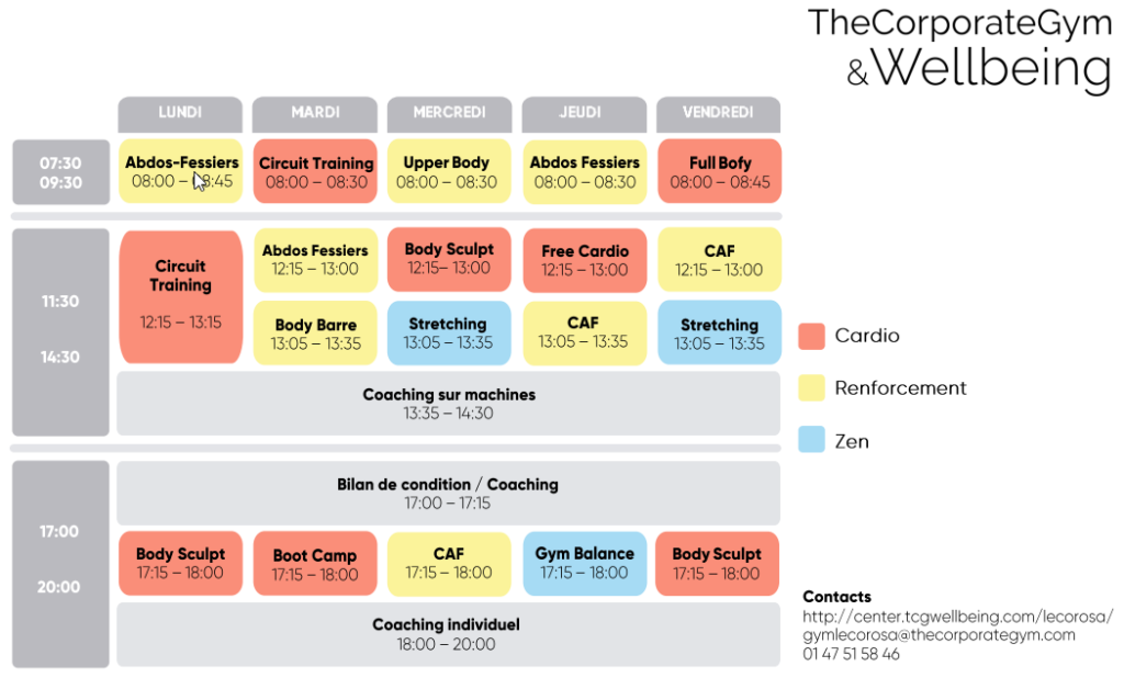 • Interval Training : Cours cardio réalisé sous forme d’ateliers.